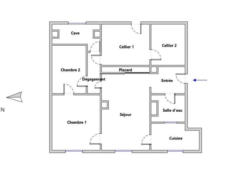Il est composé d'une entrée, une salle d'eau, un séjour, une cuisine séparée, deux chambres, un bureau et une grande pièce noire de 10m2.